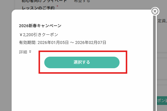 クーポン画面で「選択する」をタップ(クリック)